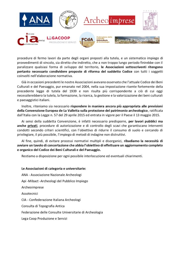 sull’archeologia preventiva e richiesta di avvio di tavolo di concertazione su